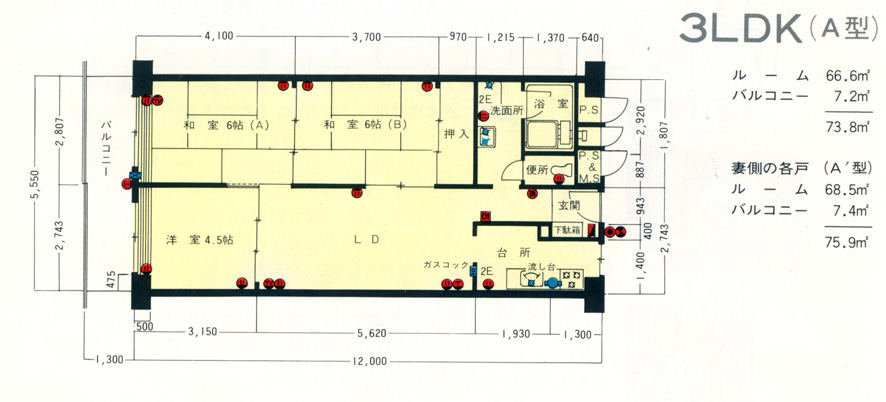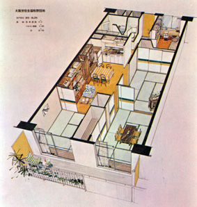 間取り図、鳥瞰図は新築時のパンフレットに掲載されたものです。各住宅内は30年の間に入居者が間取りも含めてリフォームされていることがあります。