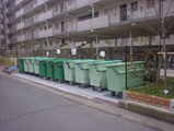 ごみコンテナ ごみ出しは量の多い一般ごみはごみコンテナにいつでもすてることができます。 汚れやすく見苦しくなりがちなごみコンテナ置き場は、床防水を施し、フェンスとツル性の植栽で囲い、週2回のごみ回収の際にきっちり清掃しています。 |