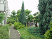 庭園・緑地 庭園・緑地は2004年度から3年計画で植栽の全面更新工事を実施。集会所前に子ども用滑り台設置 既存樹木を活用しながら新たに約200本の中高木、約2万株の潅木、宿根草、1年生草本を植え、緑と花の環境を整えています。 |