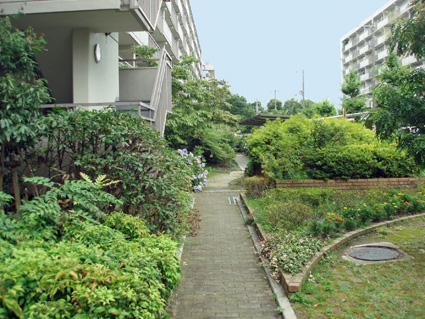 中央花壇から2号棟をみる 撮影日 2006年4月30日